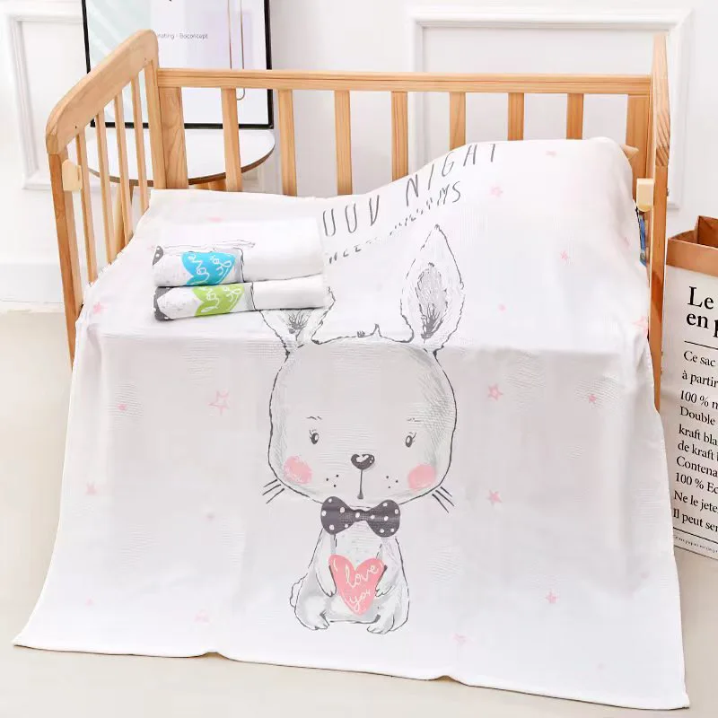 Kid Light Blanket Comfortable and Skin Friendly Quilt Infant Easy to Clean Cartoon Print Stripes Blanket Baby Bedding