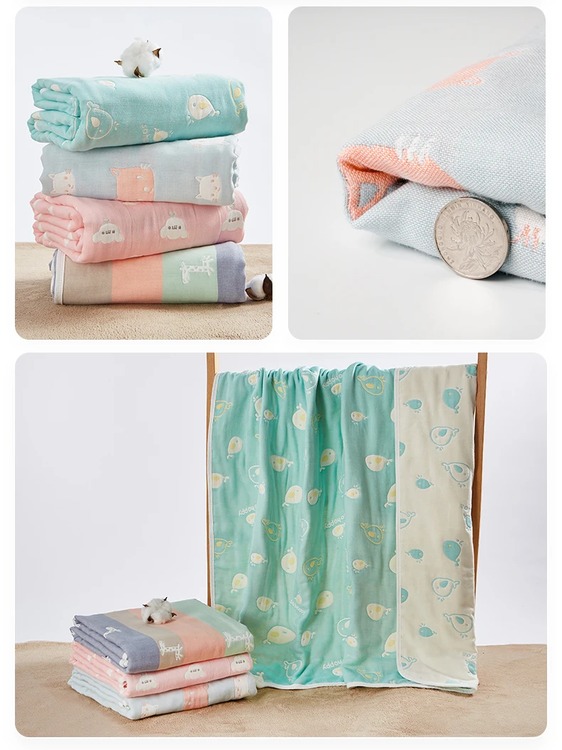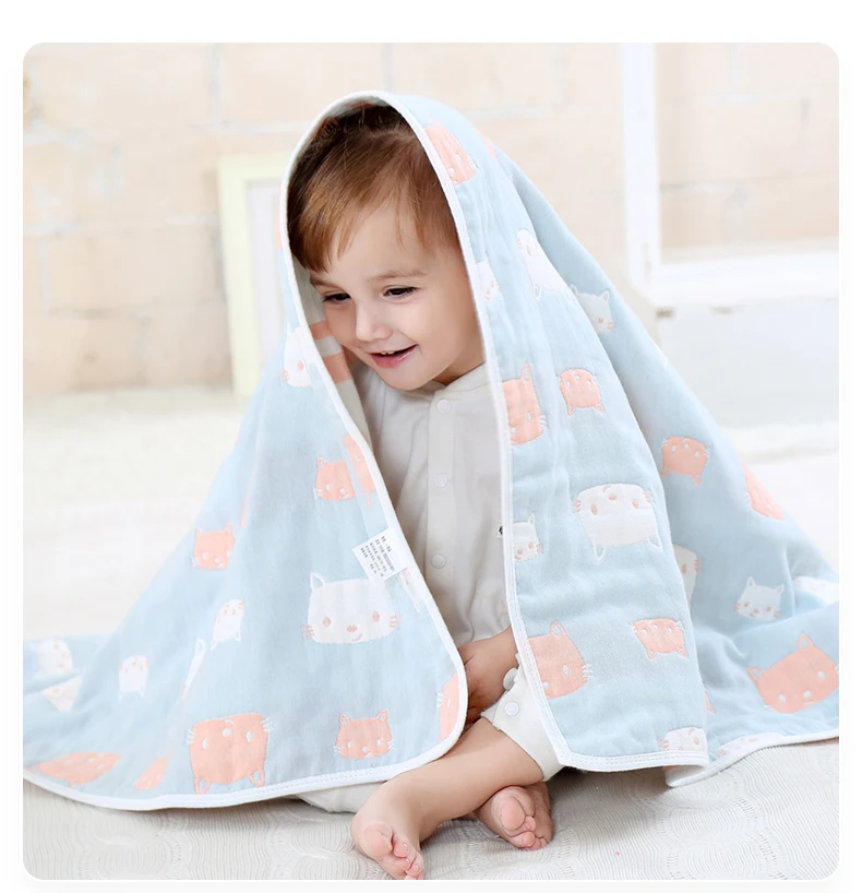 Muslin Baby Blankets Children 6 Layers Gauze Cotton Soft Anti Kick Quilt Newborn Infant Swaddle Towel Kids Bath Towel 110*110cm